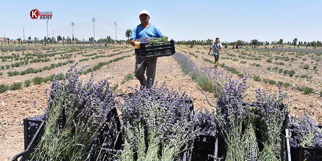 Karatay Belediyesinin, Saraçoğlu Mahallesinde 90 bin metrekarelik alanda oluşturduğu lavanta bahçesinde hasat başladı.