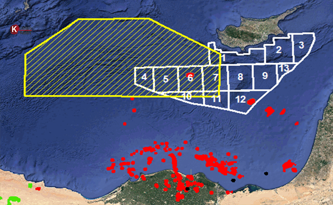 Son Navtex ilan edilen alanda olduğu gibi, jeolojik olarak çok az bulunma ihtimali bulunan yerlerde vakit kaybedilmemesi gerektiği uyarısında bulunan Aydal, şunları kaydetti: “Hükümetimiz, eğer gerçekten Doğu Akdeniz’de doğalgaz arıyorsa, öncelikli alanları aşağıda gösterilen sarı taralı alanı tercih etmeli, daha önce bulunan ve kırmızı renklerle ifade edilen doğalgaz haznelerinin doğrultularına da özellikle önem vermelidir.”
