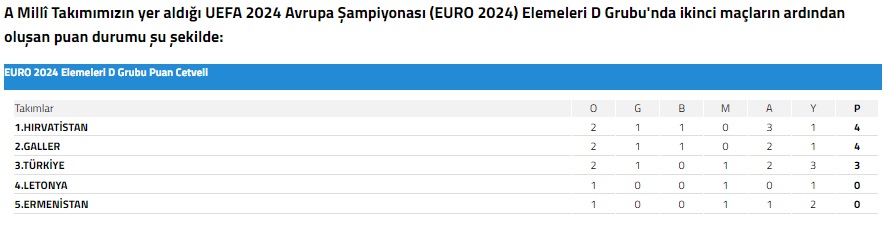 A Milli Takımımız, UEFA 2024 Avrupa Şampiyonası (EURO 2024) Elemeleri D Grubu ikinci maçında karşılaştığı Hırvatistan'a 2-0 mağlup oldu.